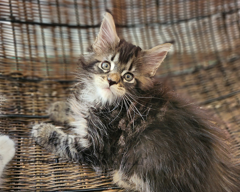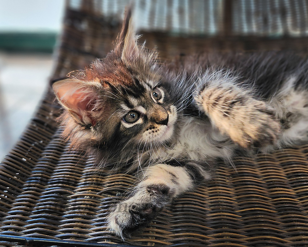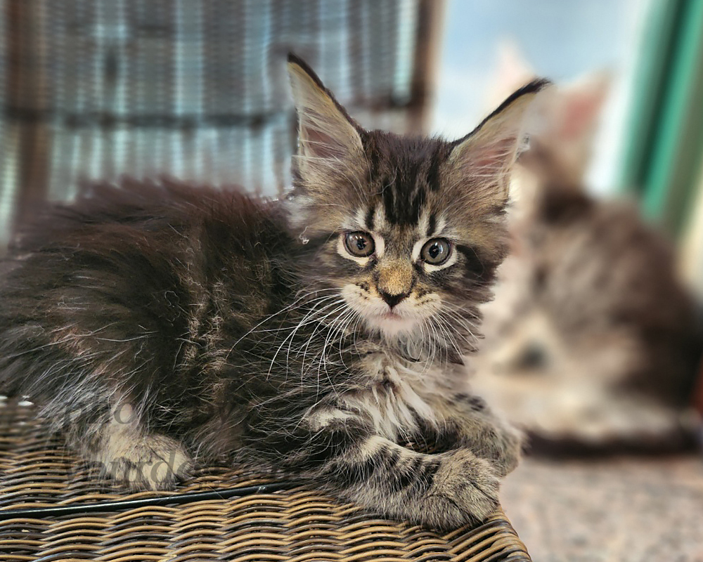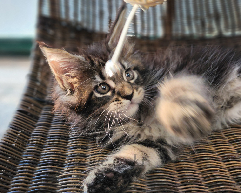 그리고 부드러운 눈빛을 지닌 멋진 메인쿤 고양이입니다.